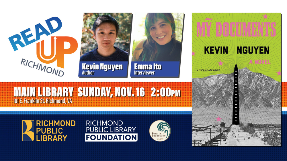 Join us for an engaging discussion with author Kevin Nguyen at Richmond Public Library! We’re honored to present Mỹ Documents as our 7th annual Read Up Richmond selection. This is a unique chance to hear directly from a respected writer, ask questions, and connect with others interested in the timely and thought-provoking issues raised in his book. Everyone is welcome— come be part of the conversation!
