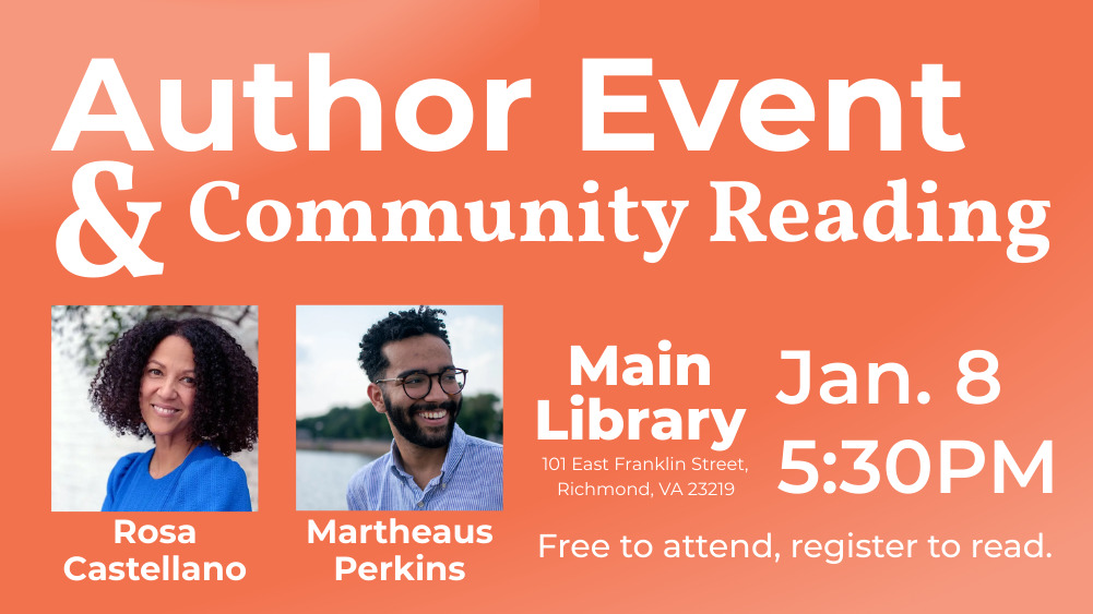 Authors Rosa Castellano and Martheaus Perkins will read poems that celebrate resilience and survival, and then welcome attendees to the mic to tell their own 3-5 minute poem, song, essay, or other story, before closing with the writing of a collaborative poem. This event is free to attend, but we ask that you register if you would like to present.