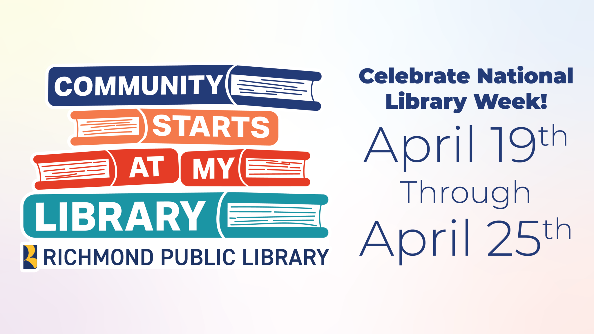 Celebrate National Library Week with Richmond Public Library! Join us April 19-25 for a week filled with fun, creativity, and community as we celebrate the power of libraries to inspire, connect, and enrich lives. Enjoy storytimes with our beloved mascot Ripple, shop new merchandise, and participate in Spirit Week activities, creative stations, and more!