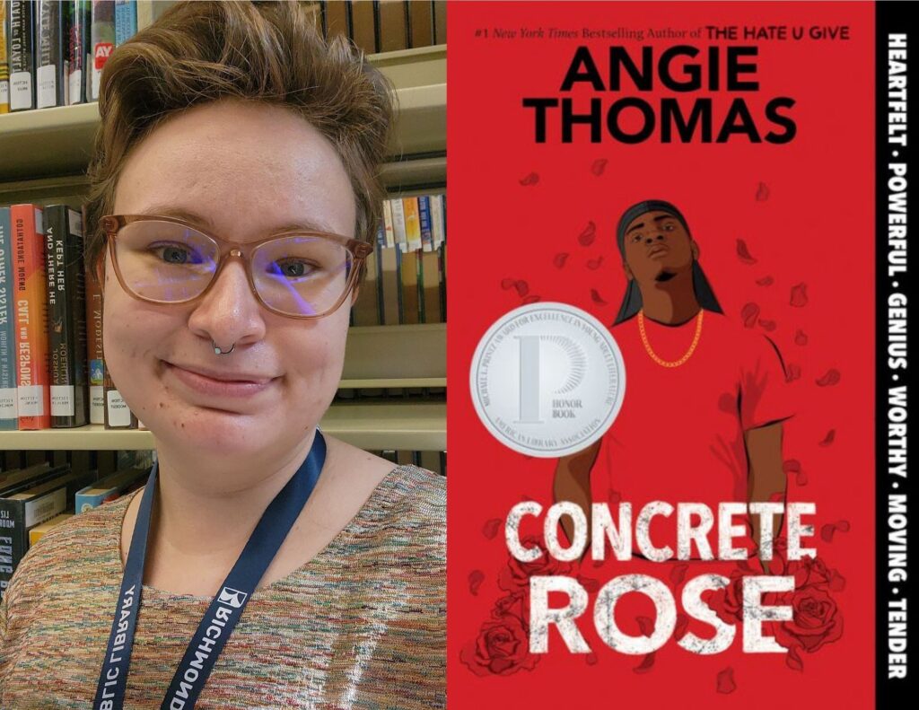 Concrete Rose is a story about family and community of all kinds: Maverick’s mother and his incarcerated father (the former head of the King Lords), his brothers in the King Lords who care for him throughout his uneasy relationship with the gang, his strict but caring boss at the corner store who teaches him the hard rewards of gardening, and his girlfriend and the mother of his child who each struggle with the pressures of growing up and parenthood. Maverick carries the heavy weight of his responsibilities with grace but is still only a seventeen-year-old with the hopes and desires of most teens, and Angie Thomas beautifully and compassionately depicts his journey of growing up and learning the depths of both grief and love as he is thrust head-first into adulthood.